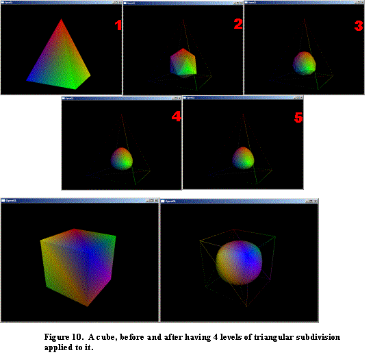 I have found that once the data structures are properly setup, a scheme can be set up quickly to subdivide any mesh. I have also found that there is a lot of processing power required at higher levels of subdivision because of the large amount of information that are generated from this process. Though this isn’t a problem for non-real-time rendering software, real-time rendering software (i.e. those in games) would need a lot of power in terms of doing the subdividing of meshes on the fly, and even optimized algorithms.