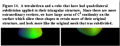 Like Doo-Sabin, this scheme is C1 continuous [8], and is also uniform (provided it is running on a quadrilateral mesh). Also, even though this is an approximating mesh, it is possible with some meshes to have the final surface extend outside of its control net (for more on this, see the Project Review).