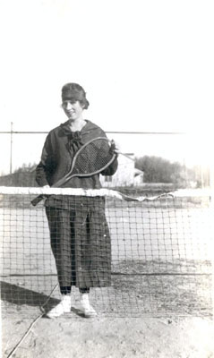 V-I-28 Brandon College tennis player Muriel Bulloch, from Reston, MB, on the court