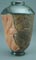 Much more visceral are Conlin's tall, hand-built and wheel-thrown urns. Numerous techniques are employed in their construction, with the result that these urns may take two months or longer to complete. The scale of the urns, up to three feet in height, may be a single encrusted phallic shape, a bullet shape or one that is double- bodied. The extensive surfaces are molded, carved, shaped, layered, combed and stenciled. The apparent thickness of the clay is accented by deep impressions of early life forms that are embedded on the urns. Ammonites swirl around the surface. Trilobites are tantalizingly alive as they swarm over smooth curves or appear as the primary image of the textural element in a tile mural.