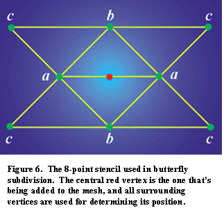 Although this mesh does not produce a smooth surface, it is sometimes used for two-pass schemes where we first need to produce new vertices in the mesh before any smoothing is done.